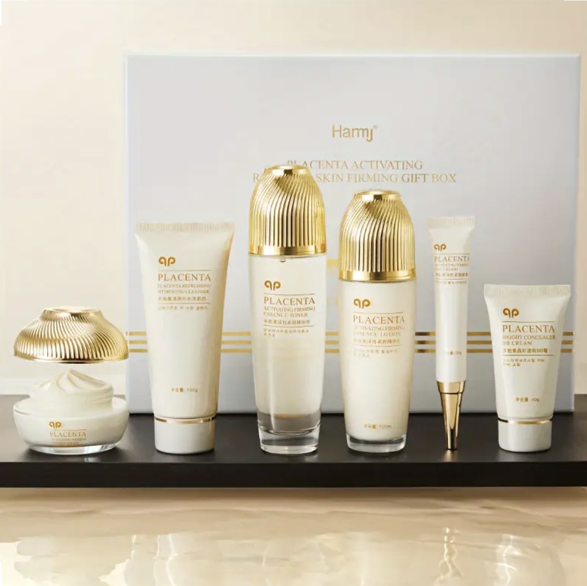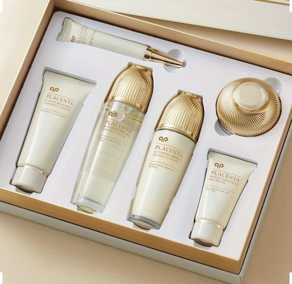 De gouden flacons en luxe giftbox maken deze set niet alleen een genot om te gebruiken, maar ook een prachtige keuze om cadeau te doen. Verwen jezelf — of iemand anders — met een complete premium skincare routine die pure elegantie uitstraalt.